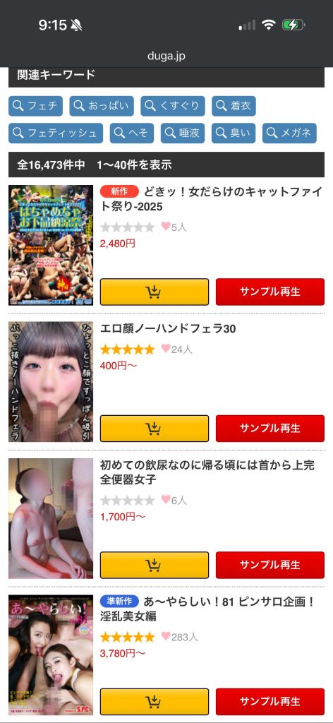 - On the product page, tap the image with the Play Icon (Triangle) 「サンプル再生」to watch the free sample. Check the weight, the pressure, and the desperate struggle before you submit your wallet.