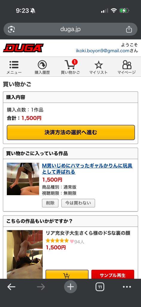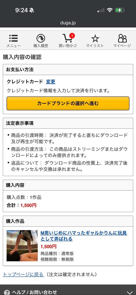 - 「決済方法の選択へ進む」Click